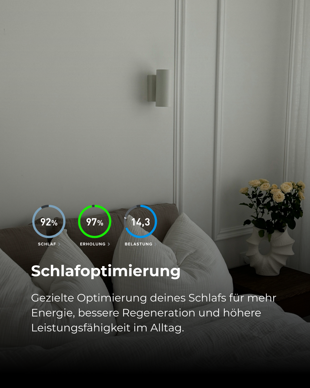 Schlaf ist der größte Hebel für deine Performance. Mit besseren Schlafroutinen schläfst du tiefer, wachst erholter auf & bist tagsüber voll fokussiert.