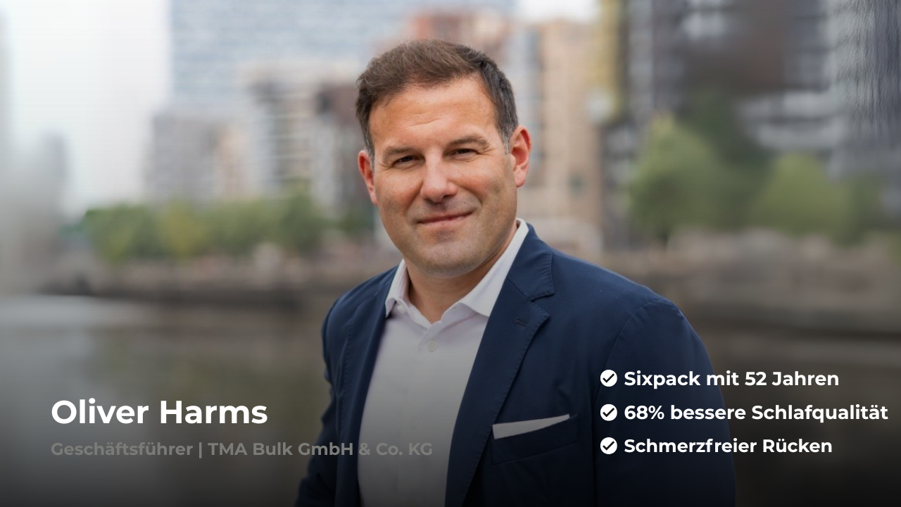 Mit 52 Jahren hat Oliver zum ersten Mal in seinem Leben ein Sixpack, schläft deutlich besser, ist schmerzfrei – und macht jeden Tag 1–2 Stunden früher Feierabend, weil er produktiver und fokussierter arbeitet als je zuvor.